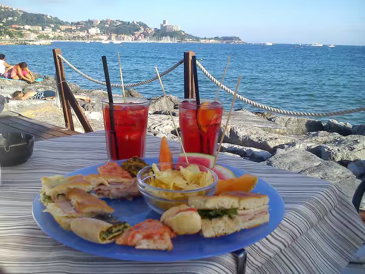 Altre spiagge e stabilimenti balneari nelle vicinanze: Baia Blu, Colombo, Lido di Lerici, Eco del Mare, Ciccillo a mare e Fiascherino. Tra San Terenzo e Lerici ci sono tantissimi ristoranti di ottima cucina che propongono i piatti di terra, di mare e le gustose ricette della cucina ligure (La Situa, La Locanda del Sole Nero, Fuoco e Fiamme il Frantoio, Bontà nascoste, etc.)