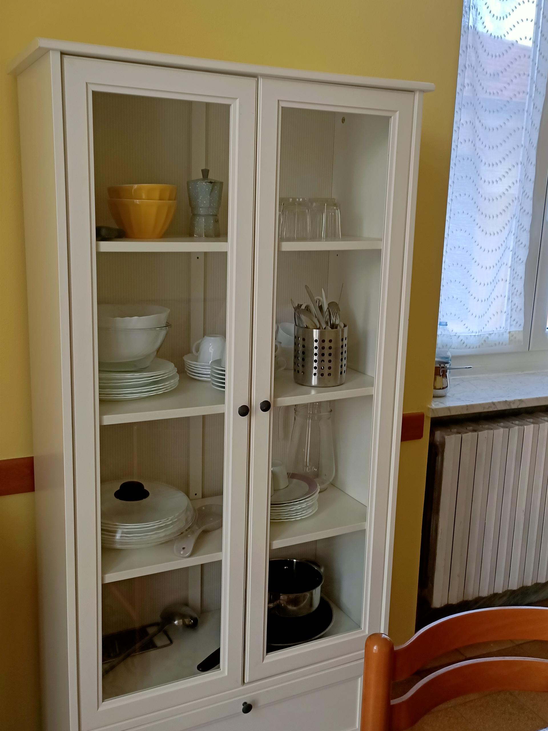- Cucina attrezzata con piano cottura a gas (4 fuochi), forno, frigorifero con freezer, bollitore e tutti gli utensili necessari per cucinare.